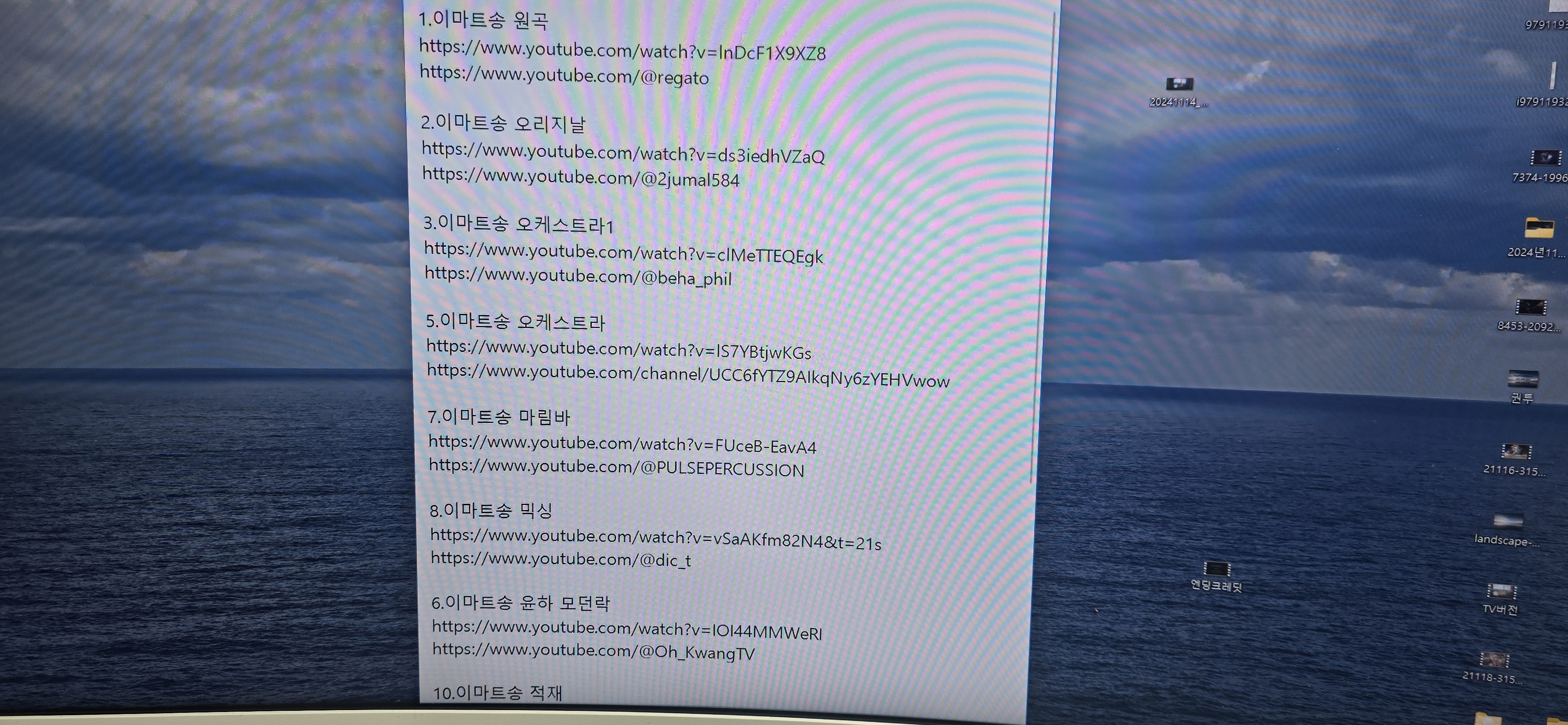 메모장에 기록한 음원 출처들은 메모장에서는 바로 클릭이 안되니...