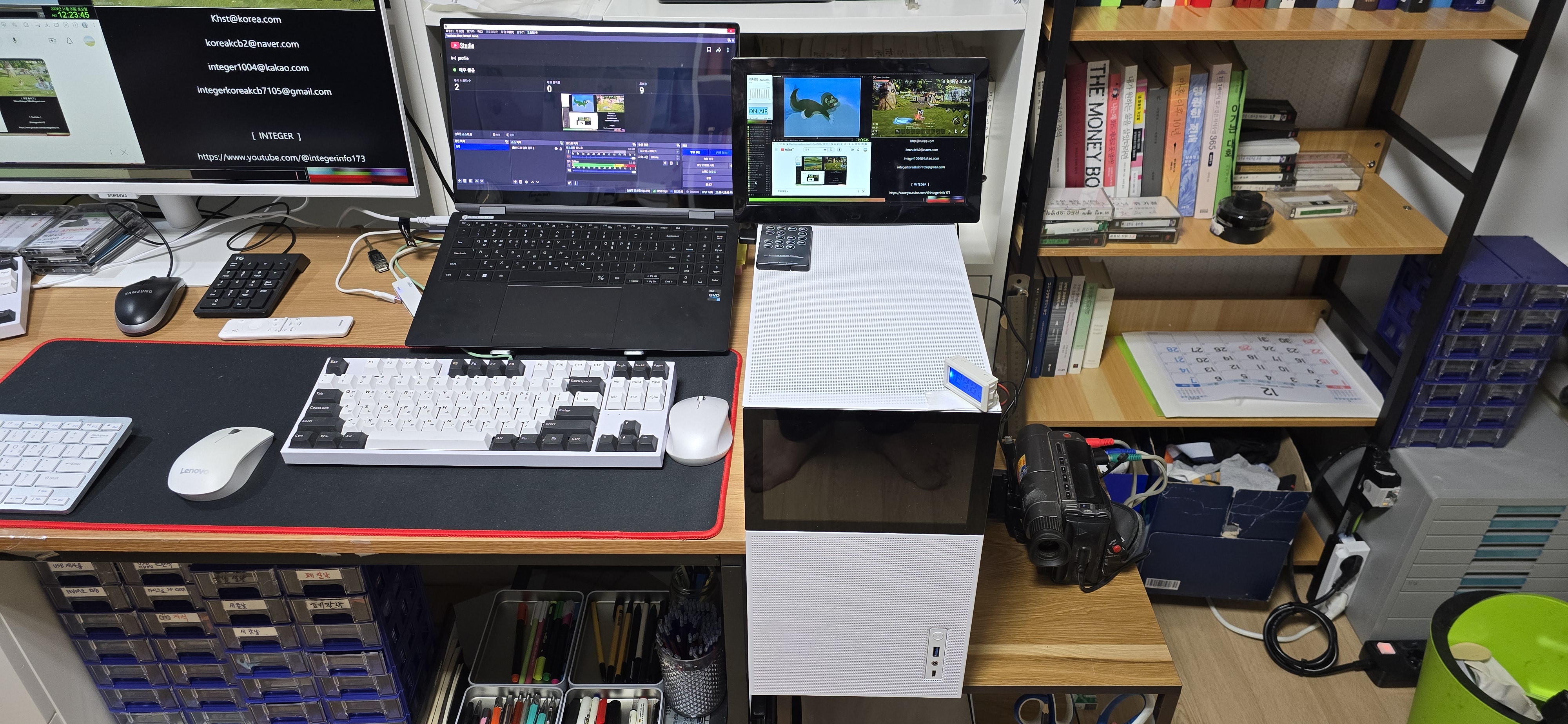 유튜브 라이브 실시간 방송 장면.... 장비들이 정신 없이 돌아가네요...