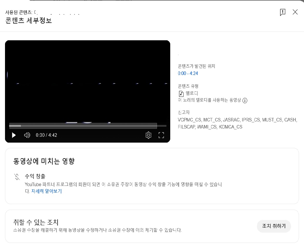 동영상에 대한 저작권 침해신고는
